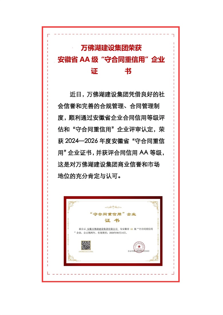公司簡介 安徽萬佛湖建設集團有限公司成立于2001年8月,是舒城縣規上企業,現有職工1600多人,注冊資本5268萬元,年實現產值5.45億元,年納稅2285萬元。集團旗下擁有舒城萬佛湖建筑勞務有限公司、安徽龍舒房地產開發有限公司、安徽玖盛建設工程有限責任公司、舒城萬發建筑材料銷售有限公司四個子公司。內設工經部、財務部、法務部、項目管理部、綜合辦公室、檔案室六個職能部室;成立了安全生產、技術質量、環境保護、合同管理和愛心活動五個領導小組;設立了公司黨支部、工會和關工委三個黨群組織。公司經營資質:房屋建筑工程施工總承包壹級、建...